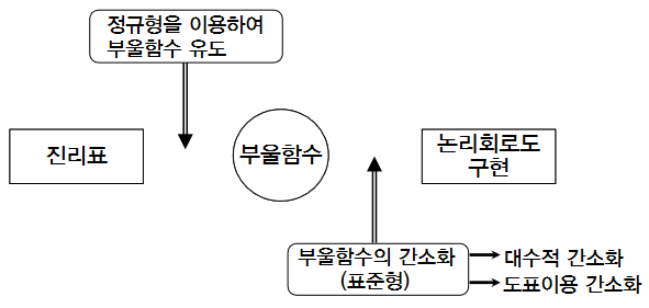 - 부울함수를 최소항의 합 or 최대항의 곱