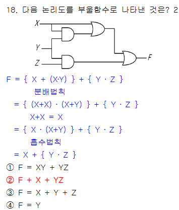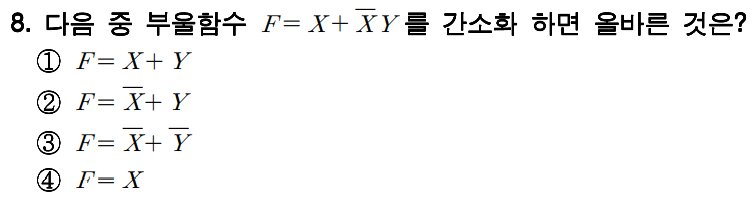 정답 : 1 F = X + X'Y = X'(X + Y) = X + Y |