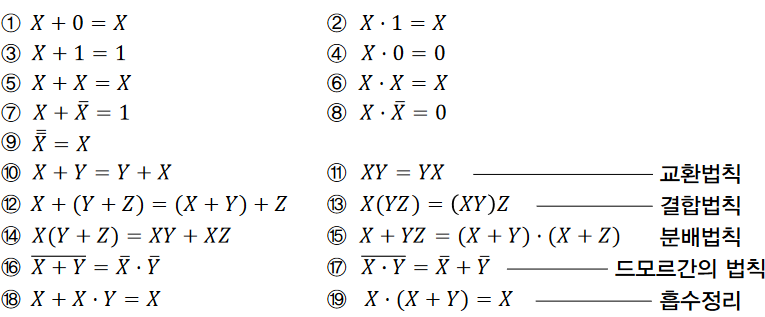 부울대수 : 0과 1의 값을 갖는 논리변수와 논리연산을 다루는 대수