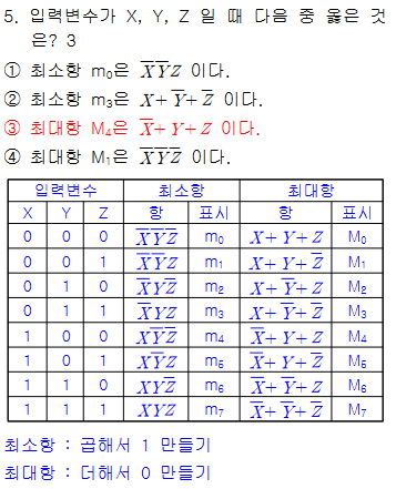 - 최대항(Mj) : 논리합(OR)으로 표현(결과 : 논리-0)