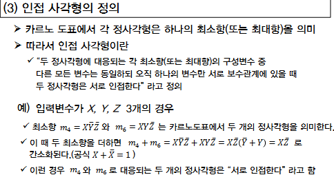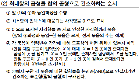- 간소화 형태 : 최소항의 합이 곱의 합, 최대항의 곱이 합의 곱 형태