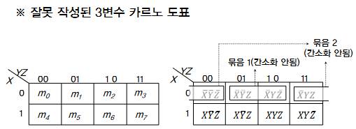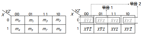 - 도표 내의 면적을 이용해 간소화 (정규형 부울함수 => 표준형 부울 함수)
