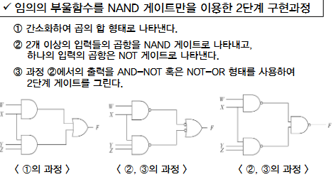 - 전자회로로 제작이 용이 회로구성이 동일 게이트로 구성되는 것이 유리