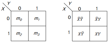 | 2 개의 변수를 가지는 부울함수 => 4개의 최소항 (4개의 정사각형으로 구성) | |