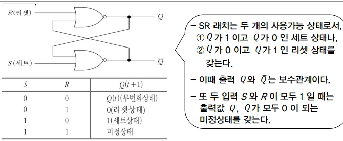 - 입력신호에 의해 상태를 바꾸도록 지시가 있을 때 현재 2진 상태를 유지하는 논리소자