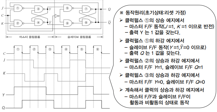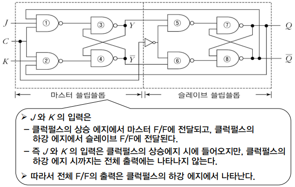 - 주(마스터)와 종(슬레이브)을 역할하는 두 개의 별도인 플립플롭으로 구성