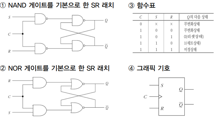 - 두 개의 NOR 게이트나 두 개의 NAND 게이트로 구성