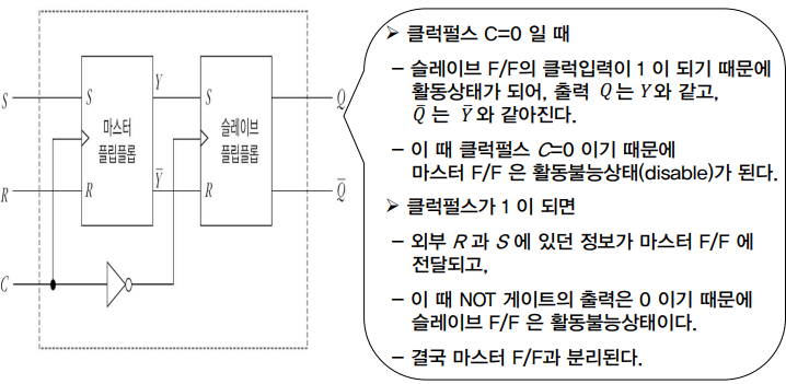- 주(마스터)와 종(슬레이브)을 역할하는 두 개의 별도인 플립플롭으로 구성