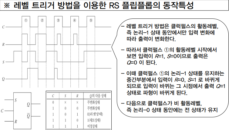 레벨 트리거 : 클럭펄스가 논리-1인 동안 내내 입력이 출력에 영향