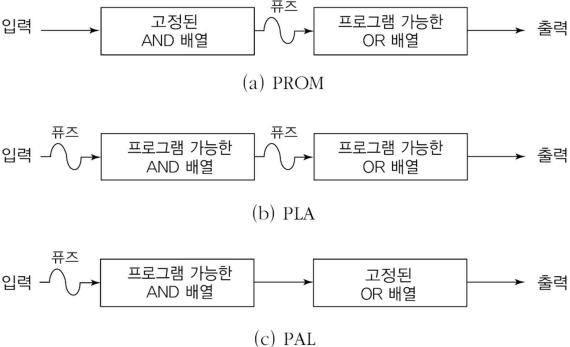 - PLD : 읽기만 가능한 기억장치 (PLA, PAL)