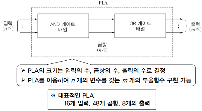 | - ROM과 같은 기능 수행, 단점을 해소 - 모든 입력변수를 디코딩 X, 모든 최소항도 만들지 X |