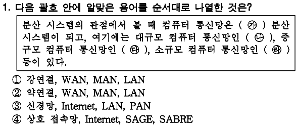 정답 : 2 약연결로, WAN - MAN - LAN 순 |
