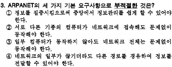 정답 : 1 ARPANET 은 정보를 분산 시키는 시스템 |