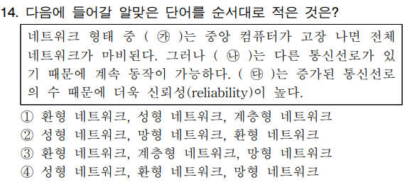 ★ 성형 네트워크 : 점대점 선로, 중앙 컴퓨터의 의존도