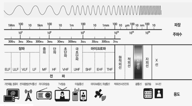 적외선 : 단거리 통신, 가시광선보다 파장이 긴 전자기파 (주파수 : 300~500MHz)