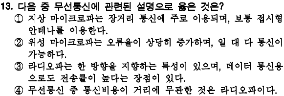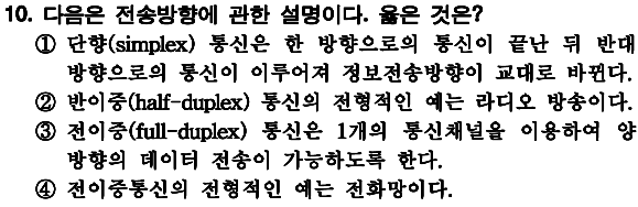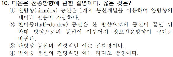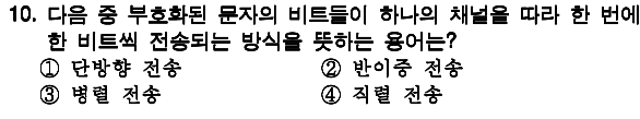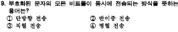 정답 : 4 병렬 전송, 모든 비트들이 한꺼번에 전송 |