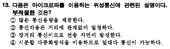 위성 마이크로파 : 장거리 전화, 텔렉스, TV, 중계국 (주파수 : 1~10(감쇠))