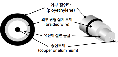 형태 : 중심 도체(심선)와 외부 원형 도체가 서로 절연된 상태로 동일한 축 형성