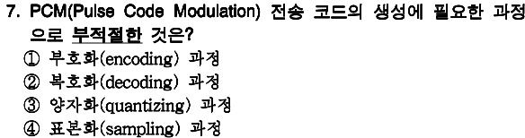정답 : 2 전송 코드의 생성 : 부호화, 양자화, 표본화 |
