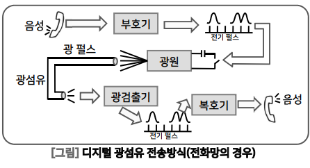 광통신 : 부호화( 정보 -> 광) -> 광 전송 단계 -> 복호화 (광 -> 정보)