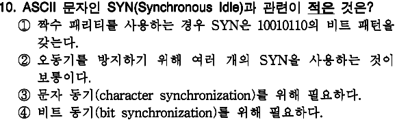 - 총 전송 비트 수 : 1000 문자 x 10비트/문자 = 10000 비트