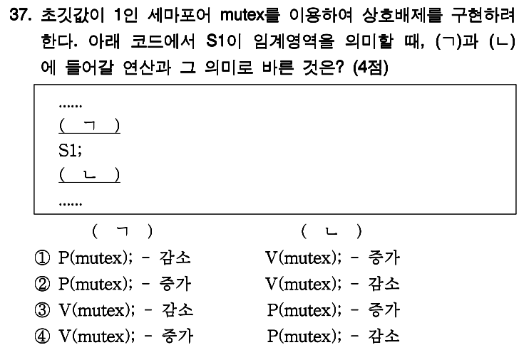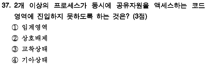 정답 : 2 1. 상호배제 공유 자원을 액세스하는 코드 여역 |