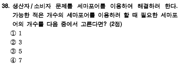 - 사용 가능한 자원의 수 또는 잠김/열림 등의 상태를 나타내는 값을 저장하는 정수형 공용변수