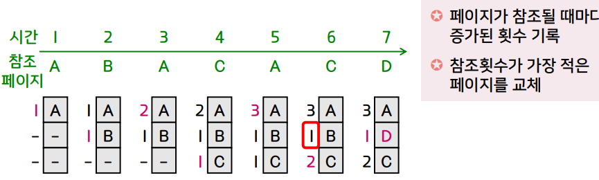 - 참조된 횟수가 가장 적은 페이지 교체 - 참조횟수 이용 ![]() |