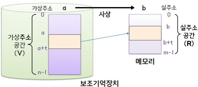 사상 : 프로세스 실행을 위해 가상주소를 실주소로 변환