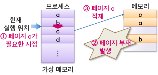 - 명령어나 데이터가 실제로 참조되면 해당 페이지를 메모리에 적재
