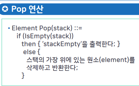 0개 이상의 원소를 갖는 유한 순서 리스트 (Create, pop, push 연산만 접근 가능)