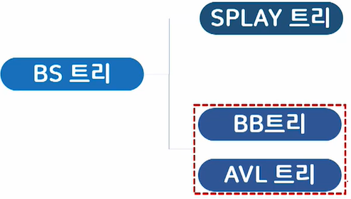 BB 트리, AVL 트리 : 루트를 중심으로 균형된 이진트리 (탐색을 위한)