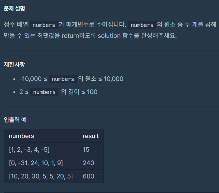 answer = Math.max(answer, numbers[i] * numbers[j]);
