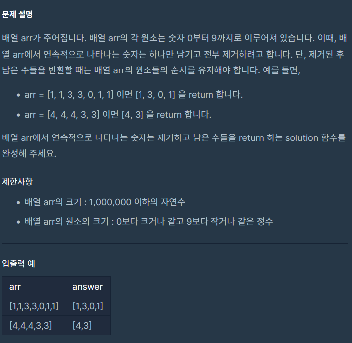 if(arr[i - 1] != arr[i]){ //두번째부터 비교하면서 입력 (그 전에 입력했던 값과 비교)