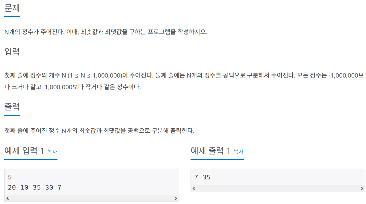 최소, 최대 (https://www.acmicpc.net/submit/10818/57493395)