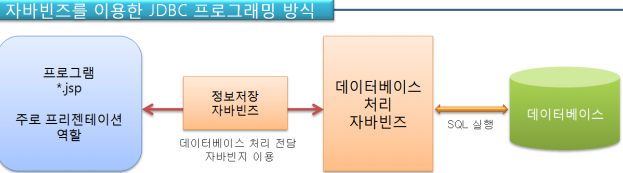 <-(정보 저장 자바 빈즈/ DB처리 전담 자바빈즈 이용)