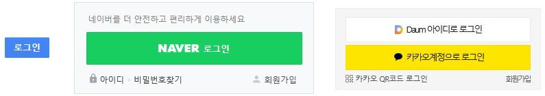 차례대로 구글, 네이버, 다음 로그인 버튼, 진입 전 화면들 입니다.