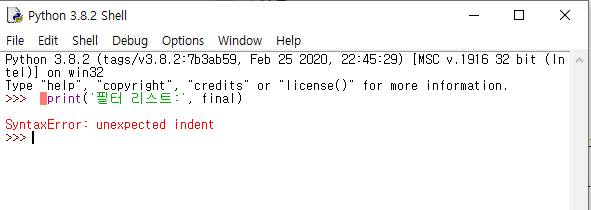 | [파이썬 오류 #3] ModuleNotFoundError: No module named 'filter' (0) | 2020.05.31 |
