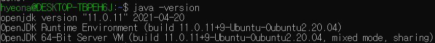 앞으로 우분투 안에서 자바로 개발할 것이기 때문에 jdk 11버전을 설치했다.