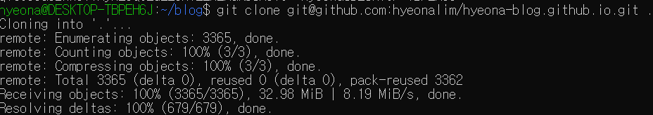 $ git clone git@github.com:hyeonalim/hyeona-blog.github.io.git .