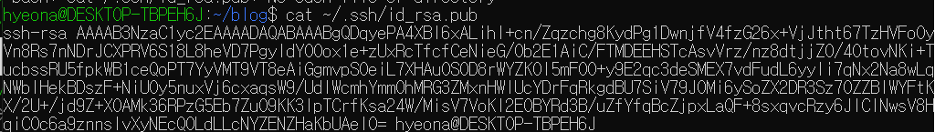 cat ~/.ssh/id_rsa.pub: ssh 키를 확인